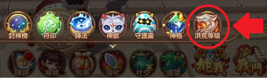 ※消耗體力獲得洪荒經驗,洪荒經驗可用於提升洪荒等級(此部分不影響主角本身等級的提升)