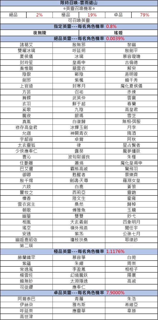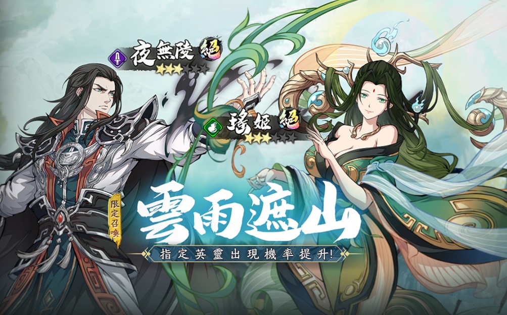 ➤雲雨遮山限定召喚開啟,絕品英靈夜無陵、瑤姬召喚機率提升。(更多英靈絕學介紹可前往遊戲內“資訊”查看)