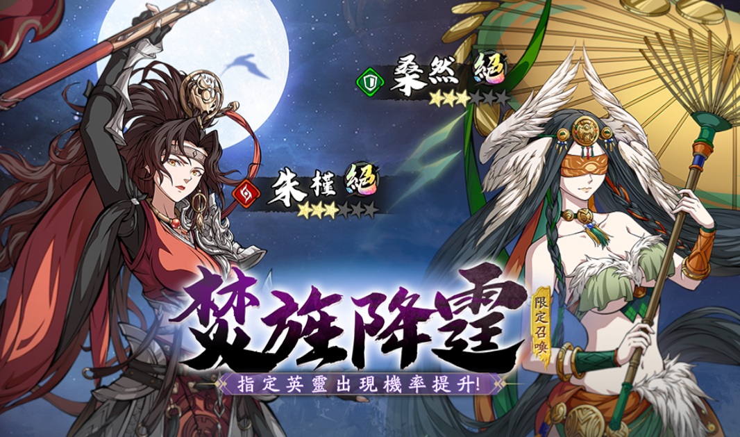 ➤焚旌降霆限定召喚開啟,絕品英靈朱槿、桑然召喚機率提升。(更多英靈絕學介紹可前往遊戲內“資訊”查看)