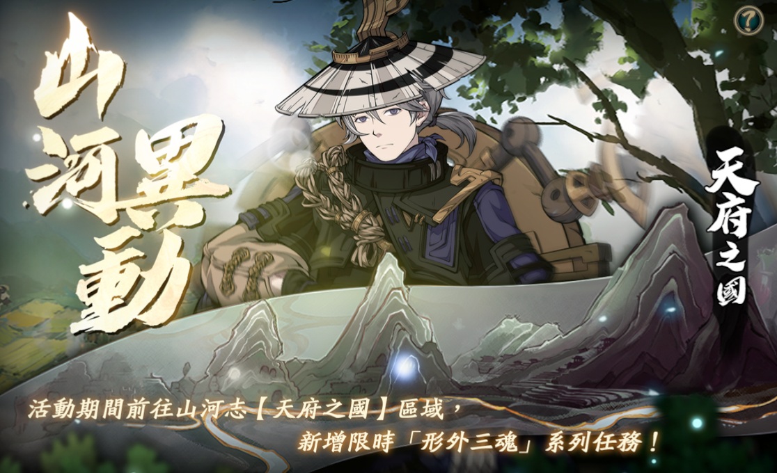 ➤活動期間,滿足山河志天府之國區域開啟條件即可解鎖限時「形外三魂」系列任務*3,前往山河志天府之國區域參與限時「形外三魂」系列任務獲得派遣英靈「形外三魂」獎勵。