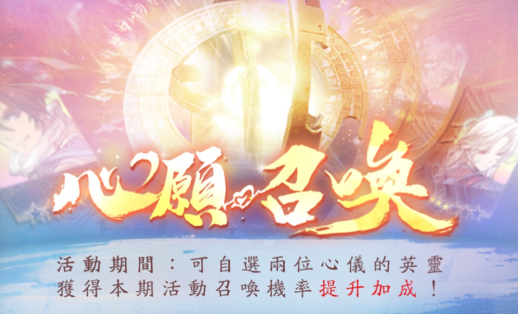 ➤活動期間,在神魔心願召喚卡池中,少俠擁有1次許願機會,可選擇列表中的2名絕品英靈作為心願英靈(包含2026年2月5日之前上線的所有神&魔屬相英靈。聯動英靈、國風企劃英靈、典藏英靈除外),心願英靈召喚機率提升。