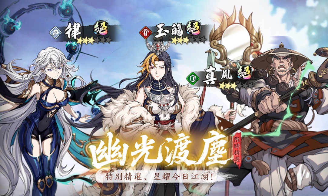 ➤幽光渡塵限時精選開啟,您從本活動中召喚的首個絕品英靈,必為律&玉觴&真胤三名絕品英靈中您尚未獲得的英靈。