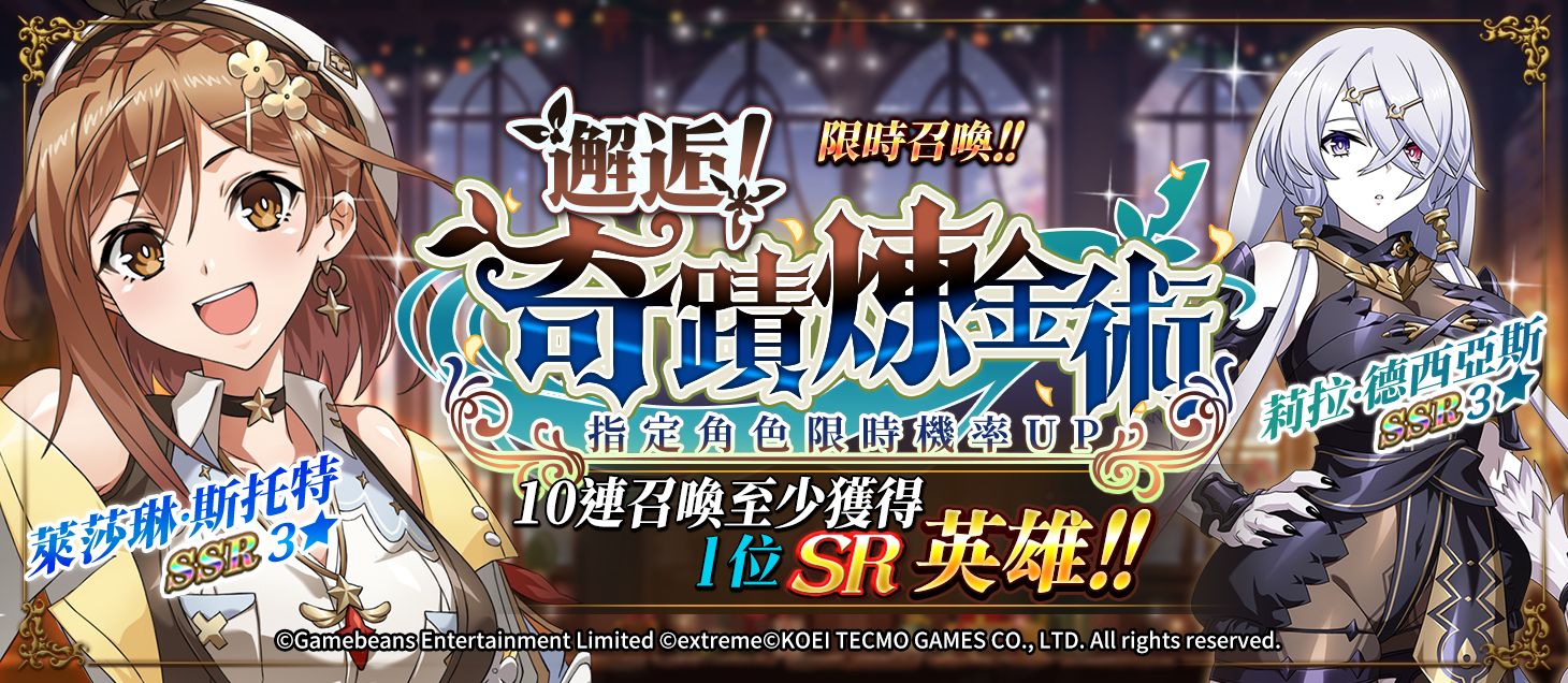 限時召喚「邂逅!奇跡煉金術」中SSR級英雄萊莎琳·斯托特、莉拉·德西亞斯出現機率提升!