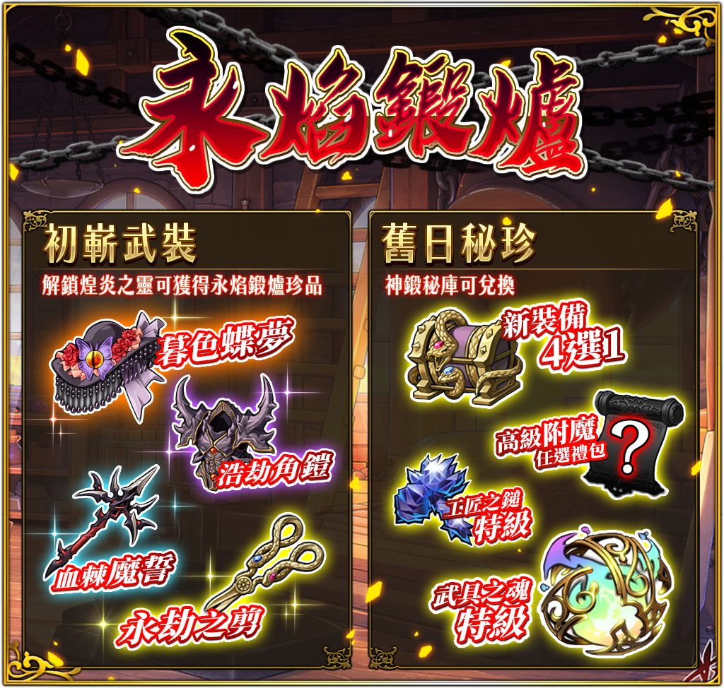活動期間,完成每日任務和挑戰任務可以積累經驗值,提升永焰鍛爐的等級,達到指定等級即可領取高級附魔可選禮包、全新SSR裝備等獎勵。
