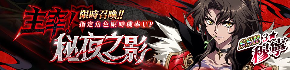 限時召喚「主宰!秘夜之影!」中SSR級英雄穆寧出現機率提升!