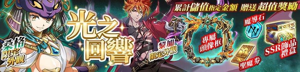 只要在光之回響活動累計儲值達指定金額,即可獲得相應獎勵,