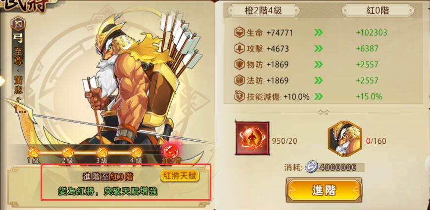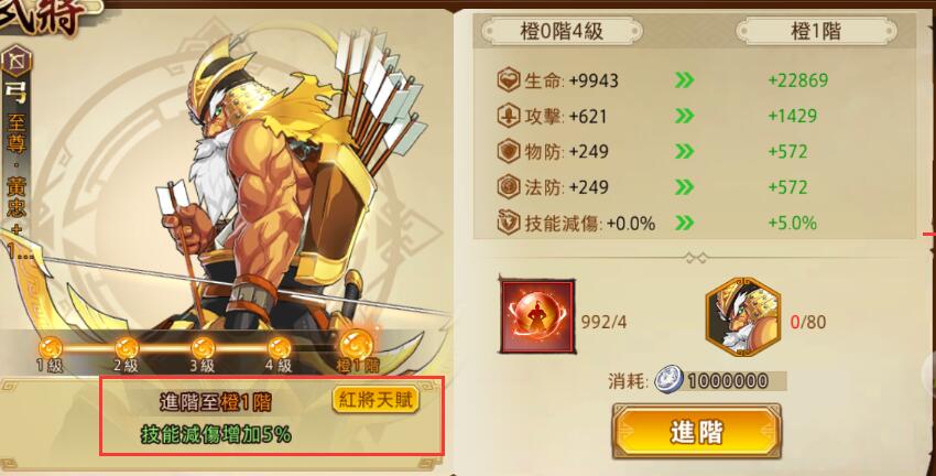 ⊙橙將升階至紅將,天賦將進階為紅將天賦