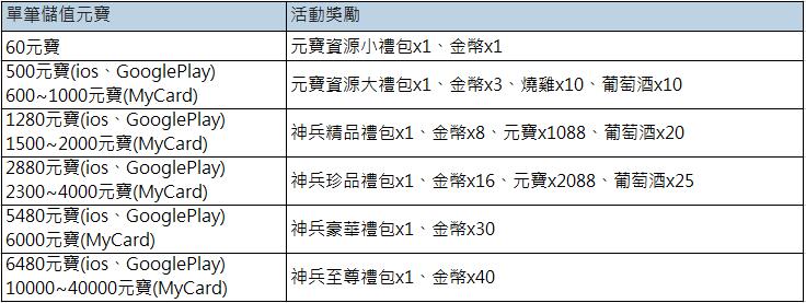 ⊙儲值活動請將軍多加留意儲值時間,請避免在活動結束前一刻進行儲值,若儲值成功後已超過活動時間,導致無法領取活動獎勵的情況,恕
