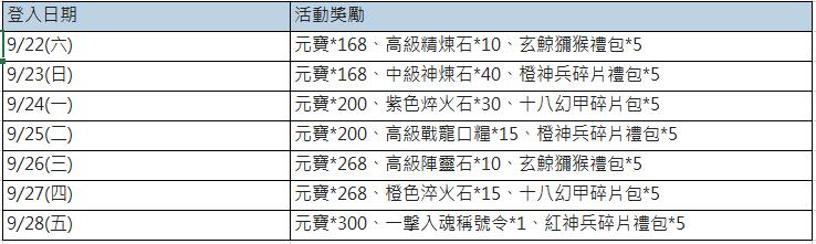 ➤活動獎勵:凡於活動限定期間內,當日登入遊戲後即可領取登入獎勵