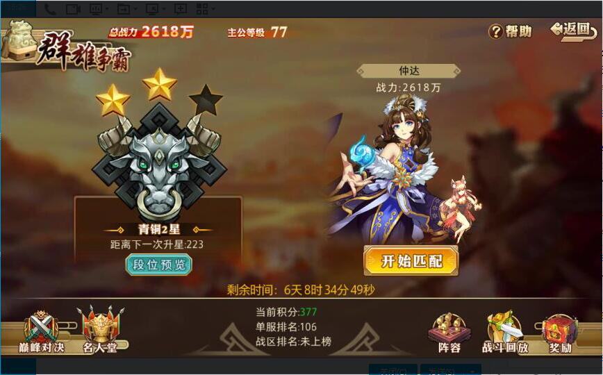 後面開服的將軍們也不必擔心,群雄爭霸是根據玩家戰力跟積分進行排位戰~