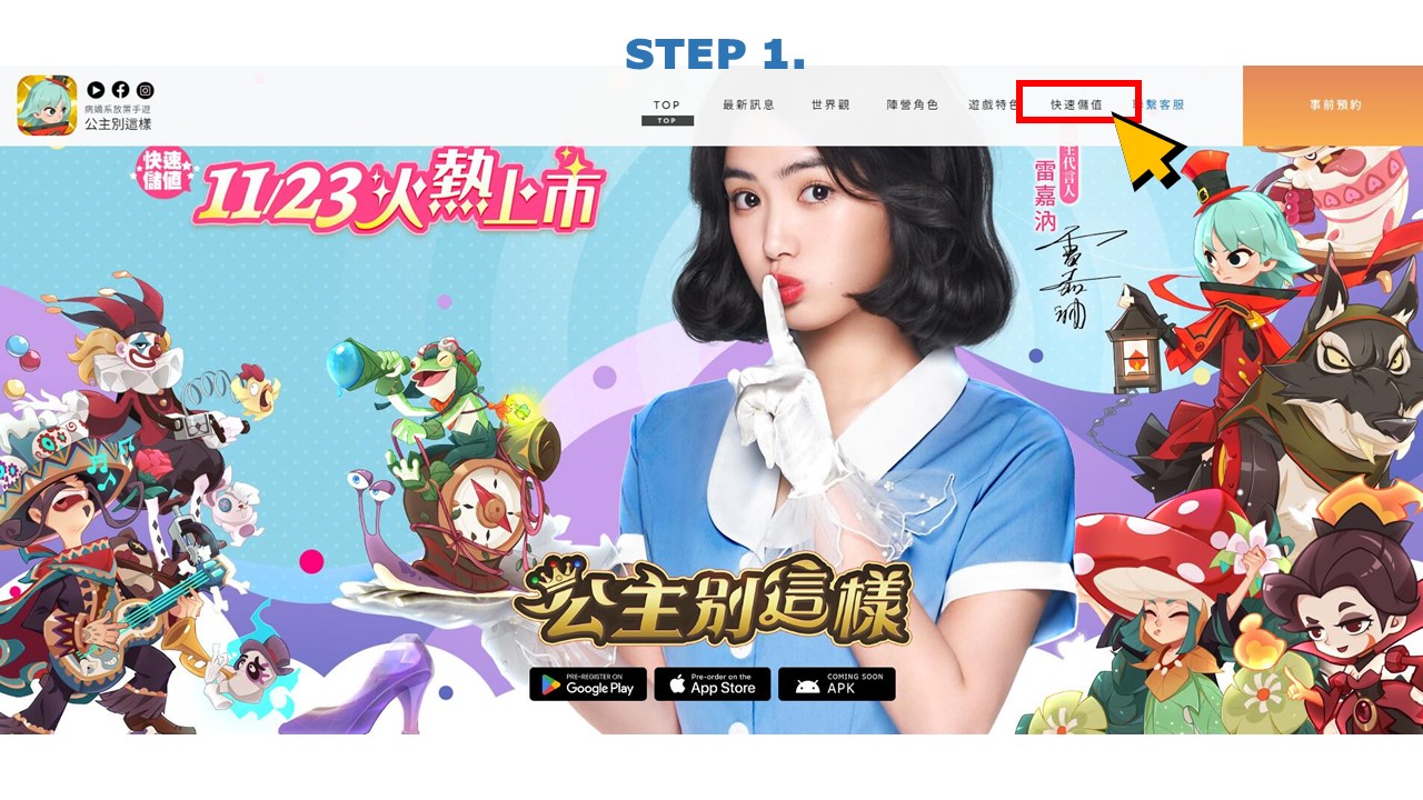 STEP1.前往《公主別這樣》官網,點擊快速儲值。