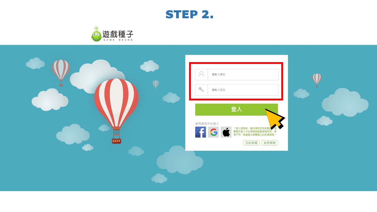 STEP2.登入遊戲種子會員帳號