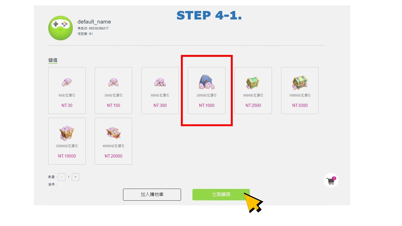 STEP4.選擇1000元品項商品,點擊【立即購買】