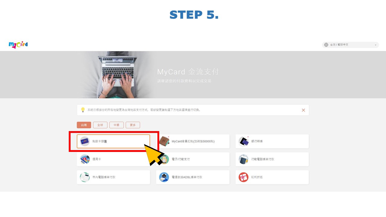 STEP5.選擇【點數卡儲值】