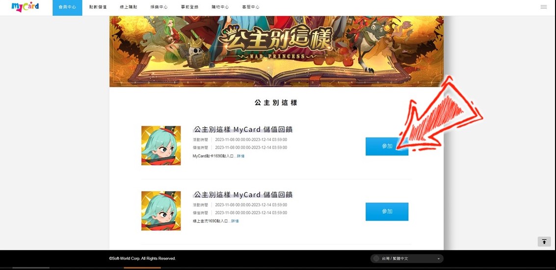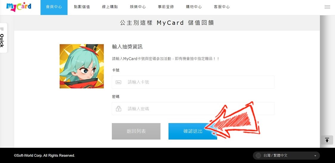 STEP3.選擇《公主別這樣》,並點選您的角色資訊和選擇支付方式【MyCard台灣地區】