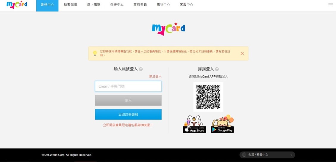 STEP3. 登入MyCard 帳號